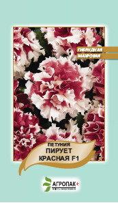 Петунія махровий Пірует червона — неперевершений сорт великобарвної петунії з торочками. Можна вирощувати навіть у несприятливих умовах. Створює невеликий каскад суцвіть.